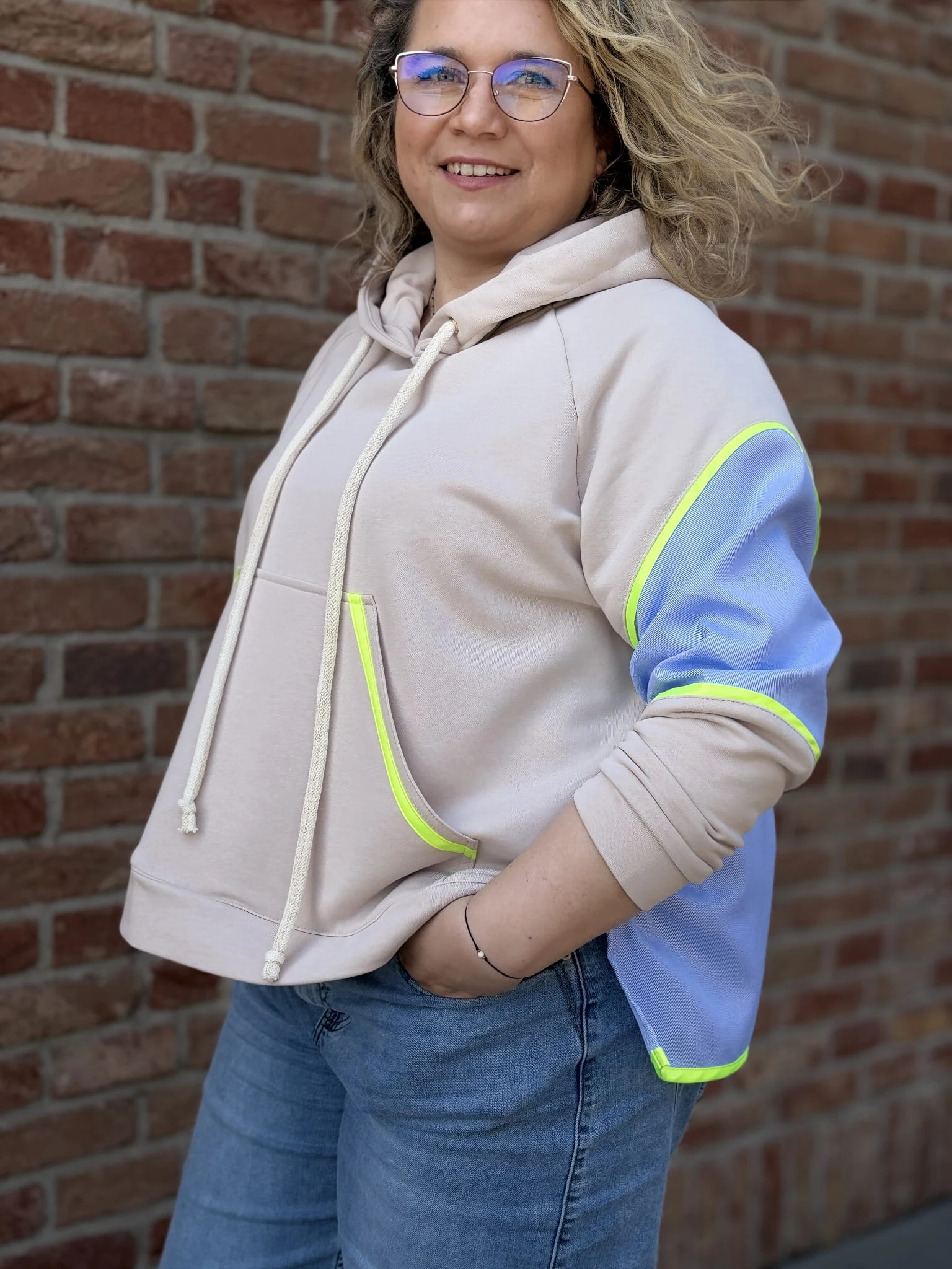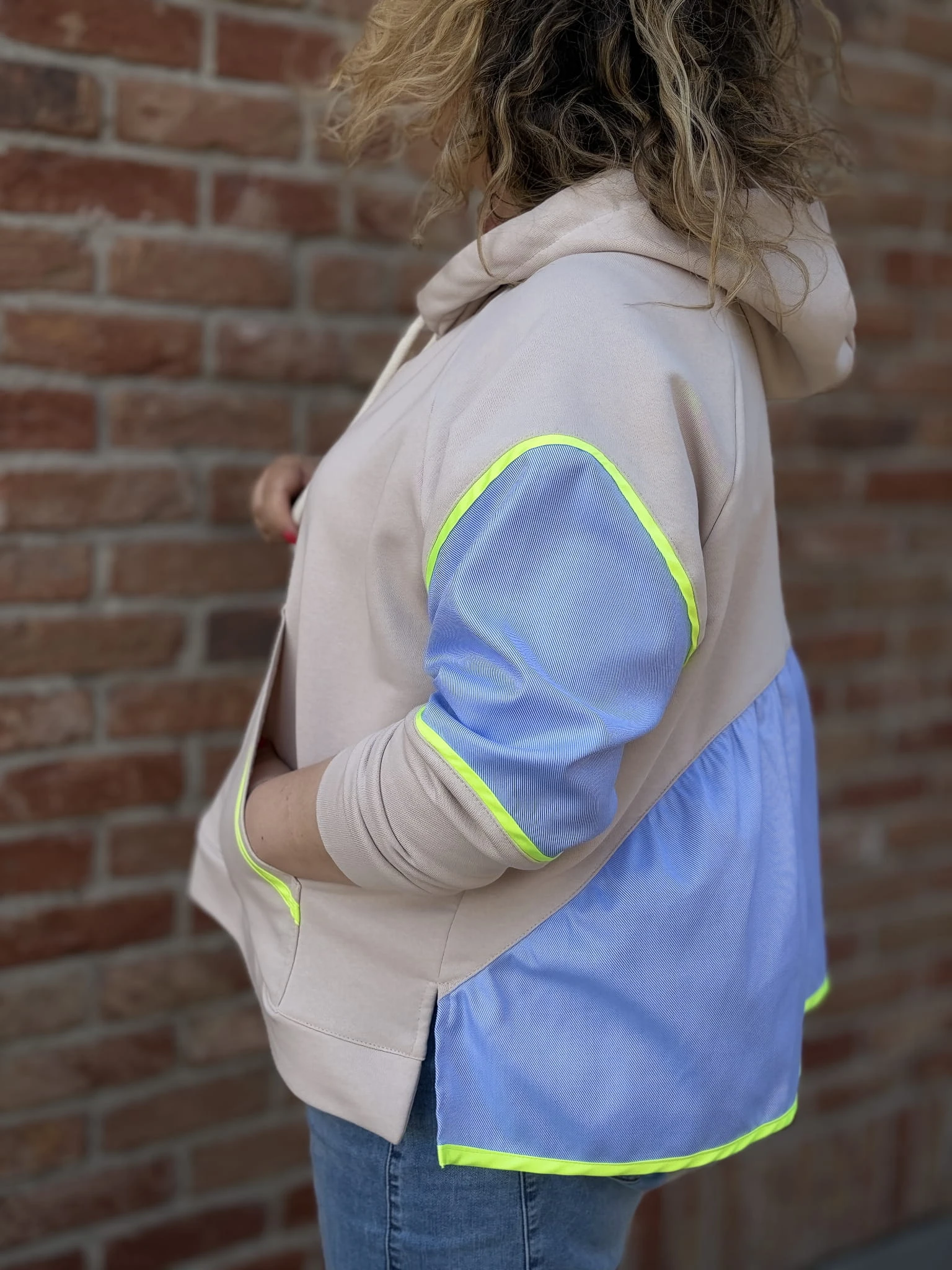 Ta bluza to wygoda, ale nie byle jaka. Miękka baza daje Ci luz, a kontrastowe wstawki i neonowe detale robią dodają charakteru bez wysiłku.