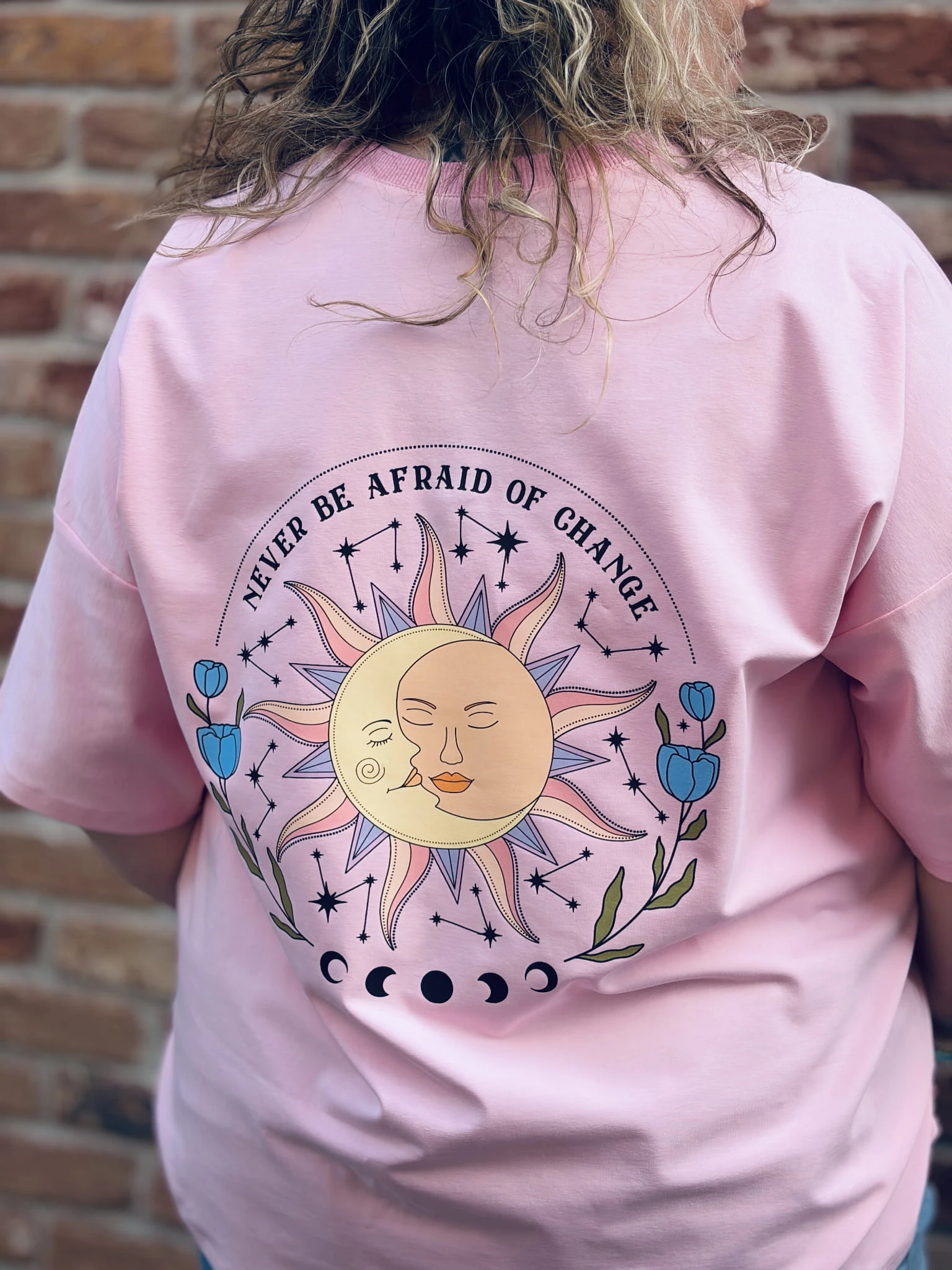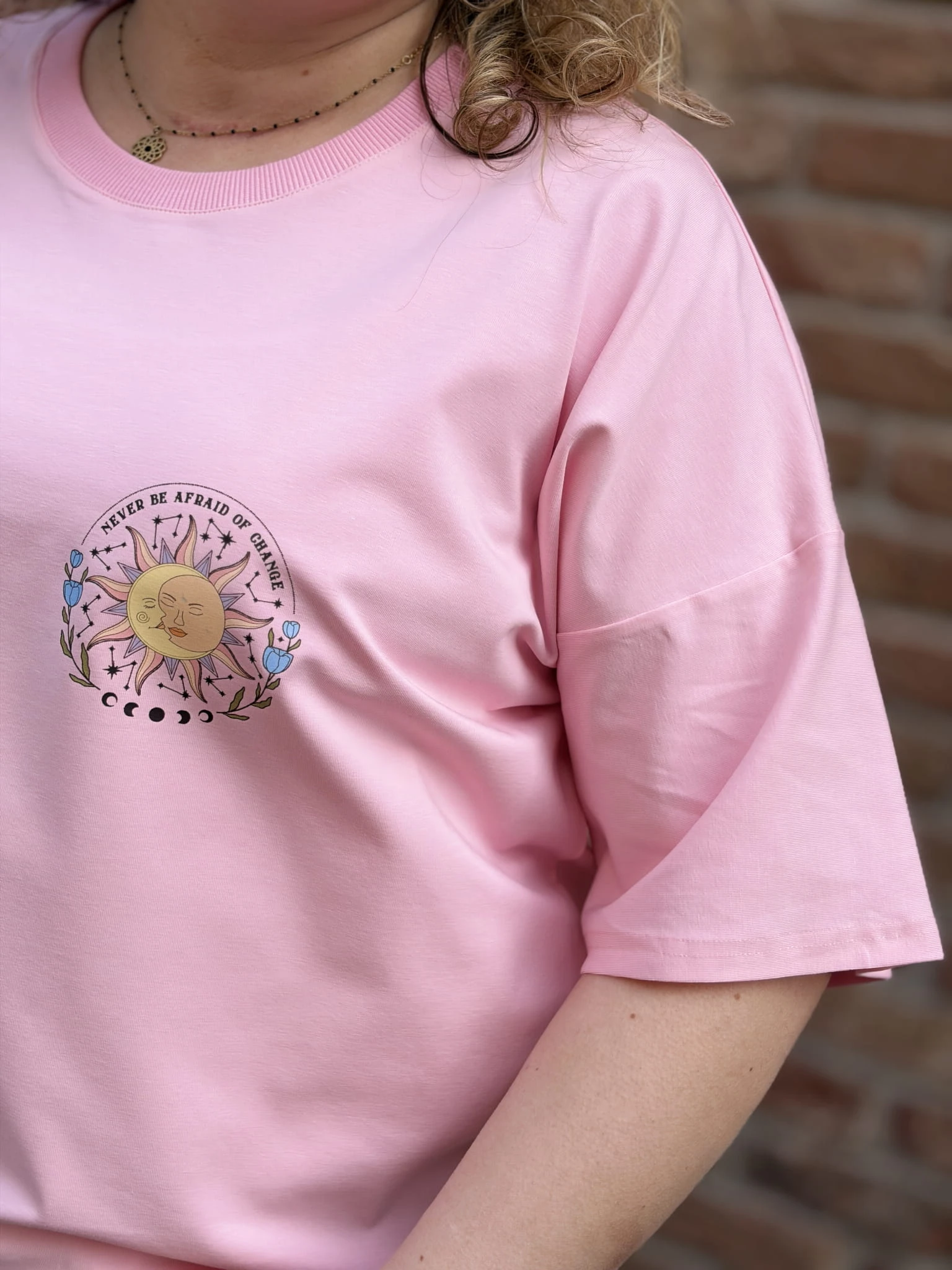 Klasyczny krój daje swobodę stylizacji – założysz ją do jeansów, spódnicy czy pod marynarkę. Nadruk “Never Be Afraid of Change” dodaje charakteru i niesie przekaz, który zostaje z Tobą na dłużej.