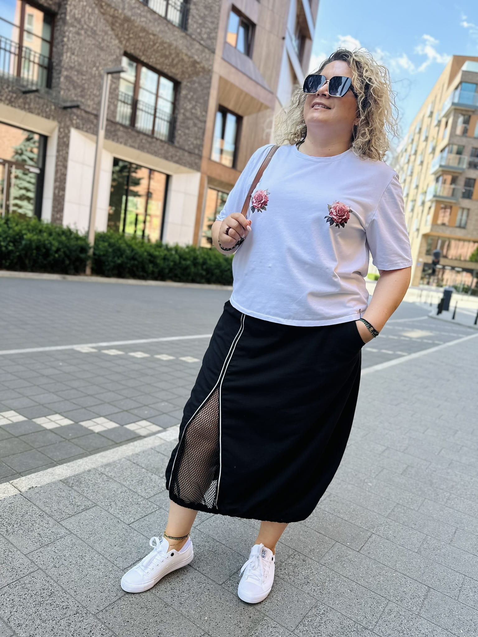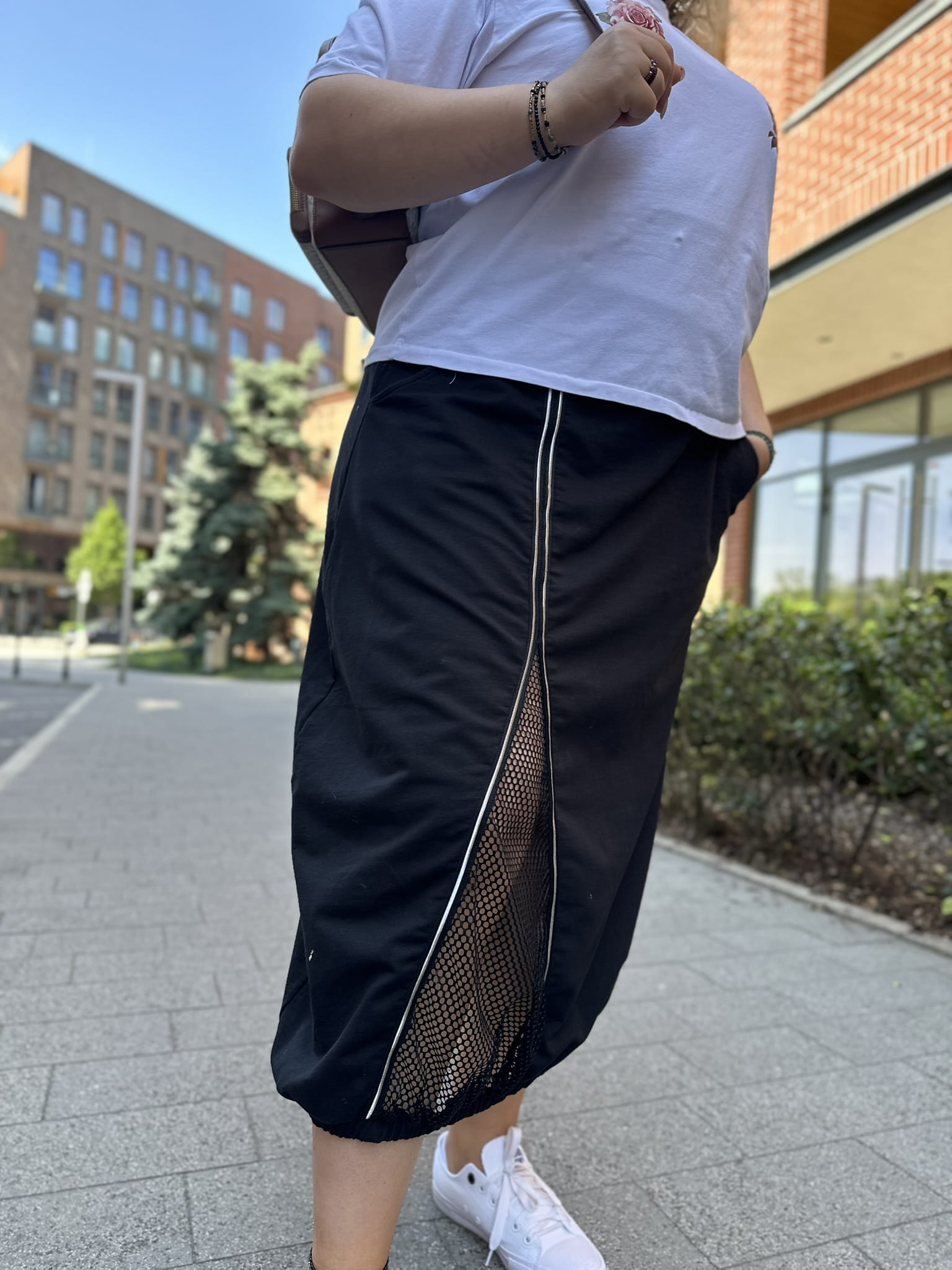 Spódnica URBAN to miejski klasyk w nowoczesnym wydaniu. Prosty fason do połowy łydki, zakończony gumką i wyrazistym rozcięciem z siatki – dodaje lekkości i charakteru. Uszyta z miękkiej, elastycznej dzianiny, świetnie sprawdzi się zarówno na co dzień, jak i w stylizacjach „athleisure”.